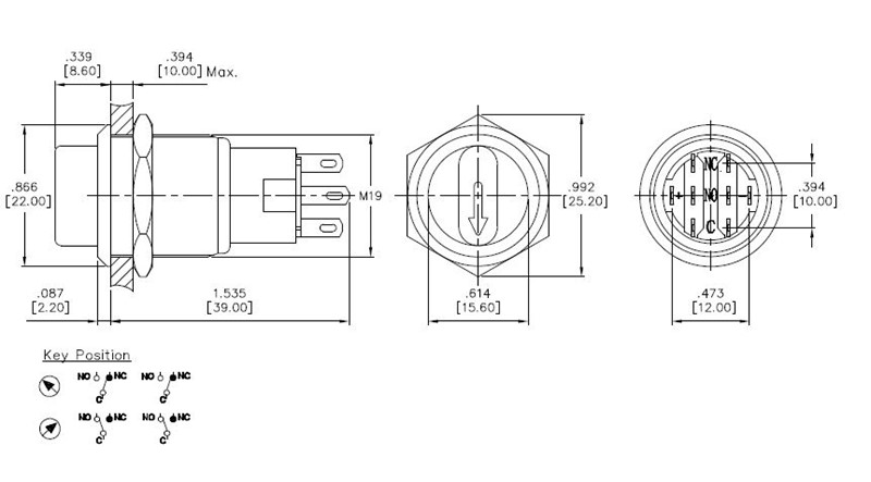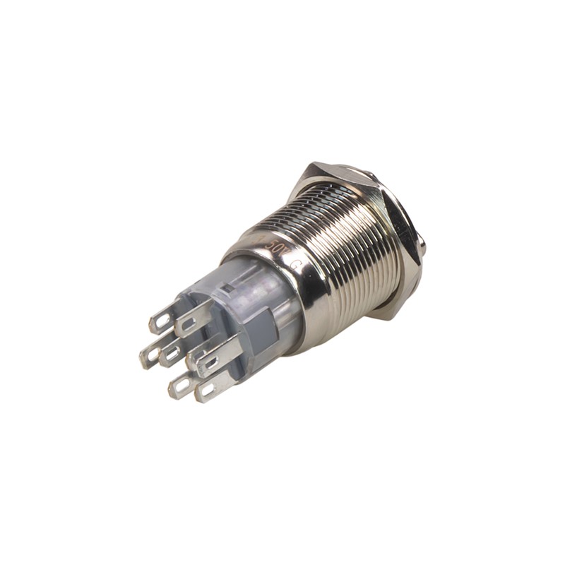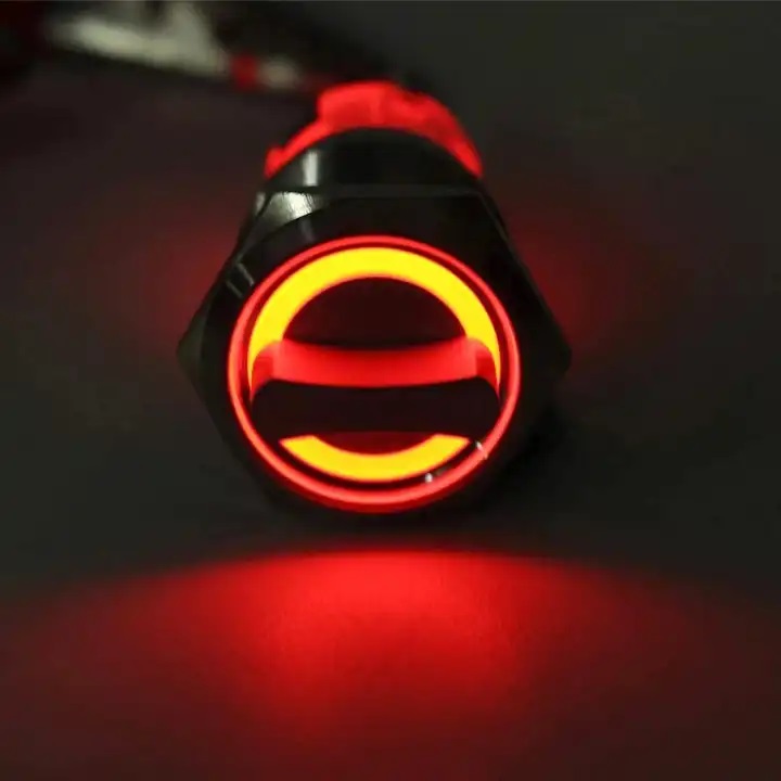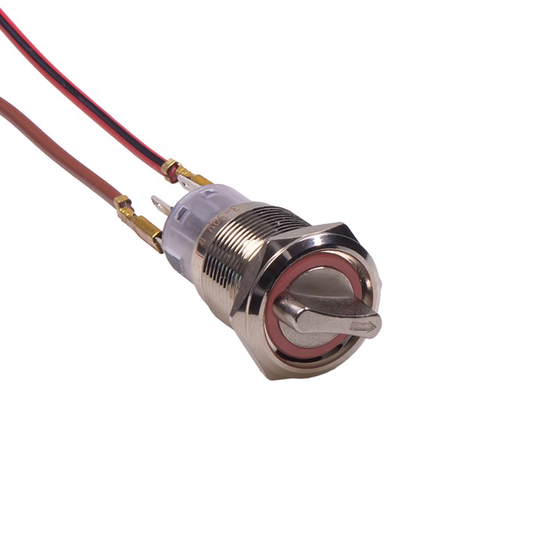 Krátký popis Spínač otočný kovový kulatý, červené LED podsvícení, kvalitní (ANTIVANDAL) provedení z nerezové oceli.