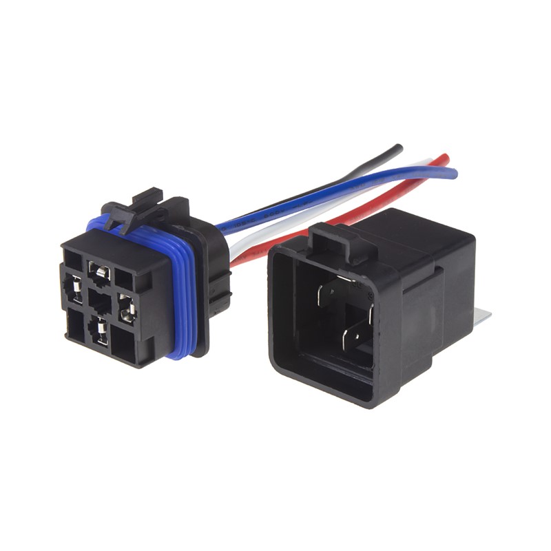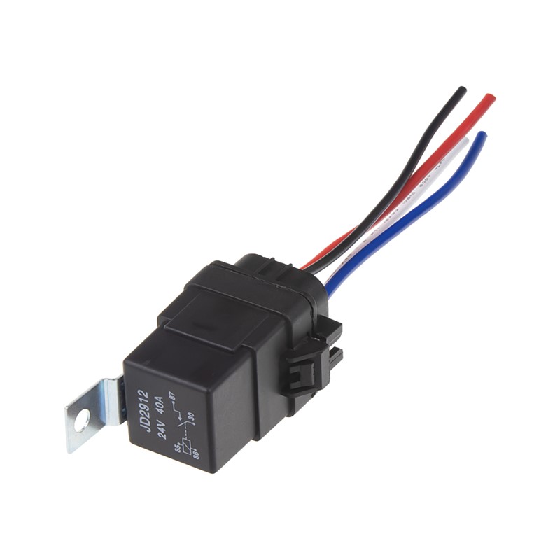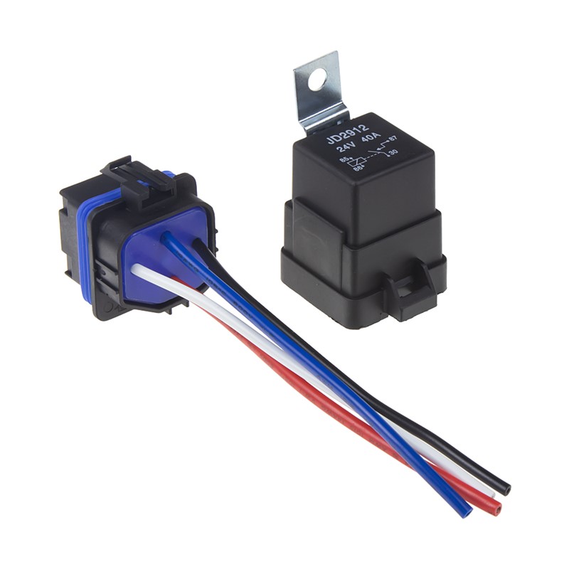 Krátký popis PROFI přepínací relé 24 V, s vodotěsným konektorem a úchytem.   Technické parametry: • napětí: 24V • jmenovitý proud 40A • počet pólu: 4 • vodotěsné + vodotěsný konektor s vodiči • délka vodičů: 125 mm • rozměry: 30,2 x 34,4 x 58 mm