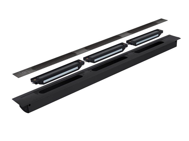 • Zákazníci si mohou vybrat mezi vysoce kvalitními variantami povrchové montáže se stříbrnými nebo tmavě eloxovanými hliníkovými skříněmi různých délek, určenými pro montáž do rohu. Druhou možností jsou verze pro zapuštěnou montáž, které se pomocí pečlivě navržené hliníkové mřížky hladce integrují s povrchem stěny.
