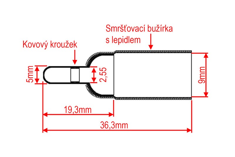 Spojovací koncovka pro kabely 0,5~1,5mm izolované teplem smršťovací bužírkou s lepidlem