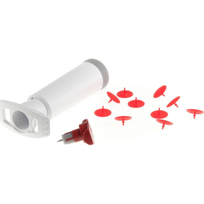 Barva: děrovač a kolíky-červená barva, vakuová pumpa-bílá barva