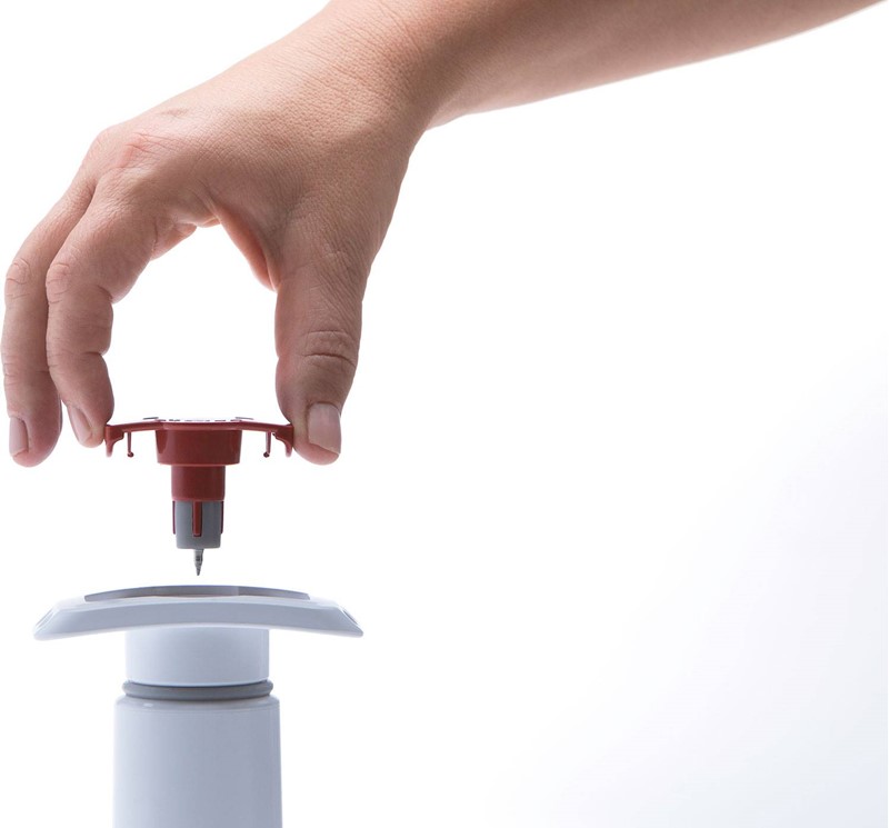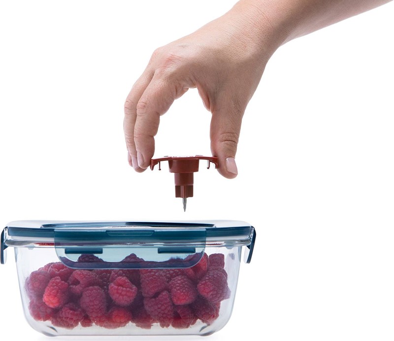 Set obsahuje: speciální vakuovou ruční pumpu (kompatibilní se všemi Status vakuovými boxy), červený děrovač pro vytvoření otvoru do víčka, 10 ks kolíků na vytvoření vakua Každé víčko je možné opětovně vakuově utěsnit.