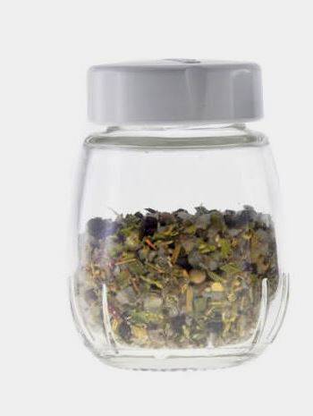 Průhledná nádobka s bílým víčkem se hodí pro uchování jednotlivých druhů koření a zachování jeho intenzivního aroma.