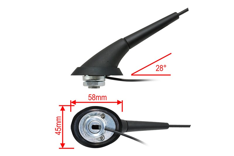 Krátký popis Střešní aktivní anténa 28° / fantom.napájení, UNI / RENAULT / OPEL / NISSAN