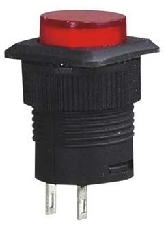 Tlačítko kulaté 3 A / 250 V, červené tlačítko, ø otvoru 16 mm.