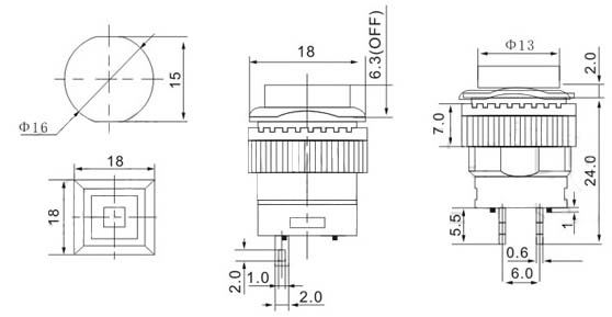 Krátký popis Tlačítko kulaté 3 A / 250 V, červené tlačítko, ø otvoru 16 mm.