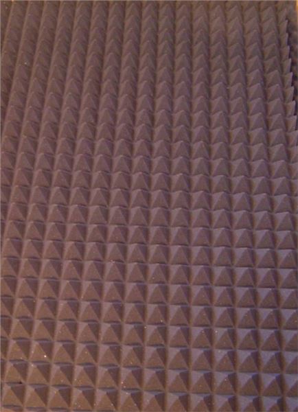 Krátký popis kvalitní zatlumovací panel o velikosti cca 1x1m, Absorbční deska šedé barvy s jehlany