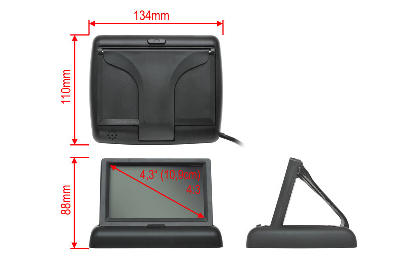 Krátký popis TM-4303 vyklápěcí monitor 4,3" / 4:3, 1x video vstup