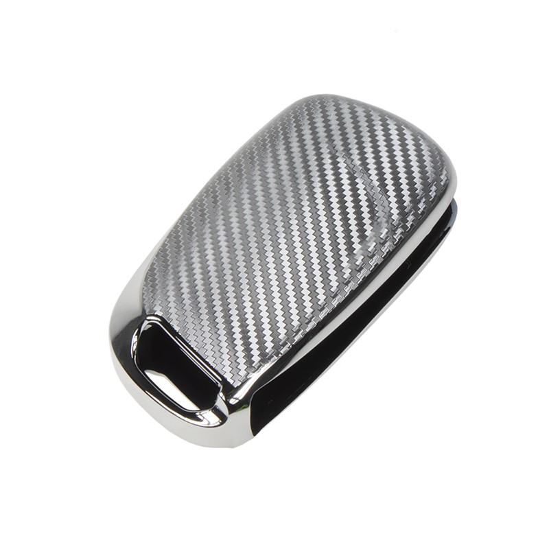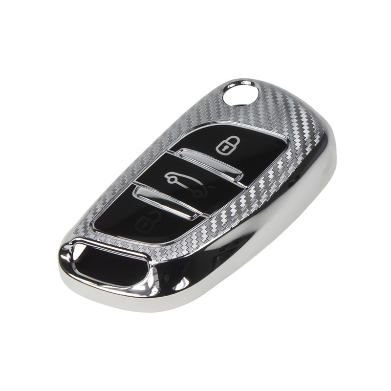 TPU obal pro autoklíč Peugeot/Citroën, 3-tlačítkový, stříbrný s carbonovým vzorem.