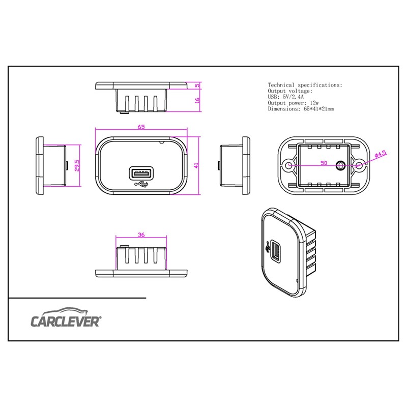 Krátký popis USB nabíječka pro montáž do otvoru, modrá LED indikace.     Technické parametry: • napájecí