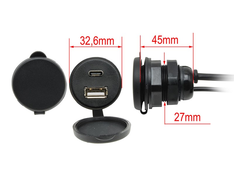 Krátký popis USB-C + USB-A zásuvka s kabelem 1m