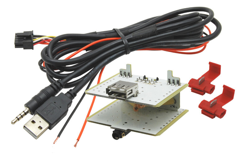 Adaptér pro připojení USB a AUX signálu, nahrazuje původní konektor v automobilu při použití aftermarket (dodatečně) instalovaného autorádia.