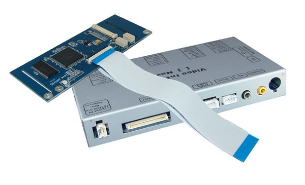 Modul pro připojení externího video signálu k OEM systému MIB ve vozech VW s monitorem Entry od výrobce LG (malý displej 5" s CD mechanikou nad displejem) a Škoda s rádiem Swing s barevným 5" LCD (rádio bez mechaniky CD) , modely 2013-. Modul disponuje třemi vstupy pro kompozitní video signál včetně zpětné kamery. Připojuje se pomocí přídavné desky, která se montuje do displeje. Zdroj video signálu připojený přes modul funguje i za jízdy.