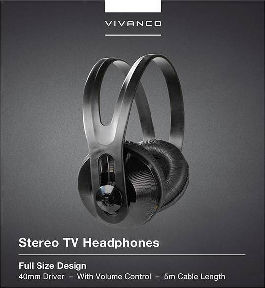 Krátký popis Uzavřená TV sluchátka přes hlavu s 5m kabelem