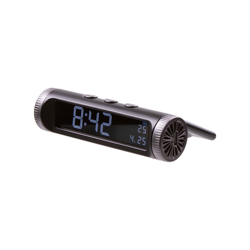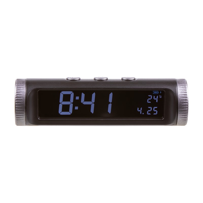 Digitální hodiny s teploměrem pro zobrazování vnitřní teploty a data, se solárním napájením.