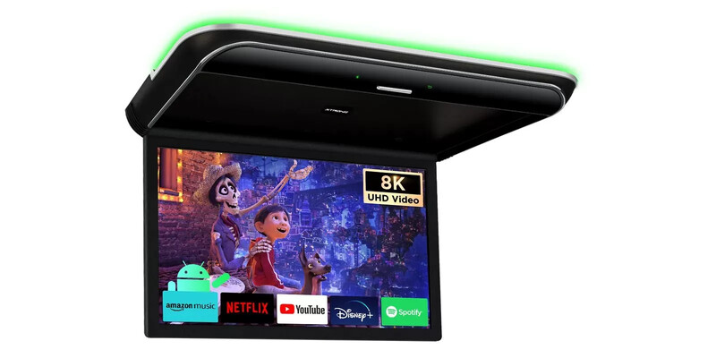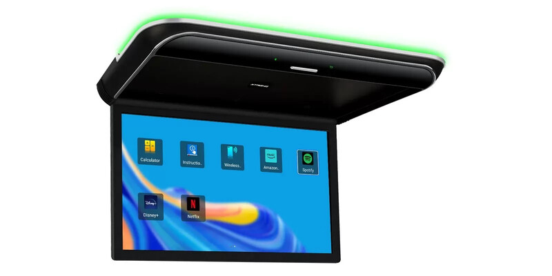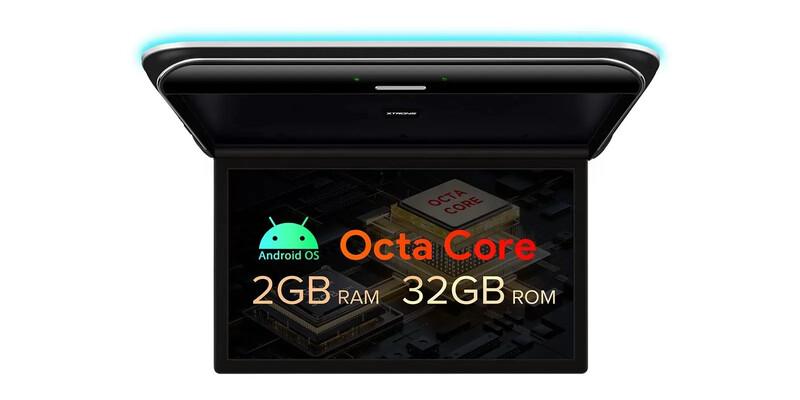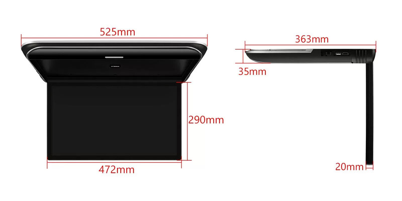 Krátký popis Stropní monitor do auta s Android systémem - 19,5“ 1600 x 900 IPS obrazovka, osmijádrový multimediál