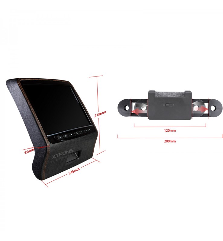 Krátký popis LCD monitor pro hlavové opěrky - 9" HD displej, USB, DVD, HDMI, dvě barevná provedení.