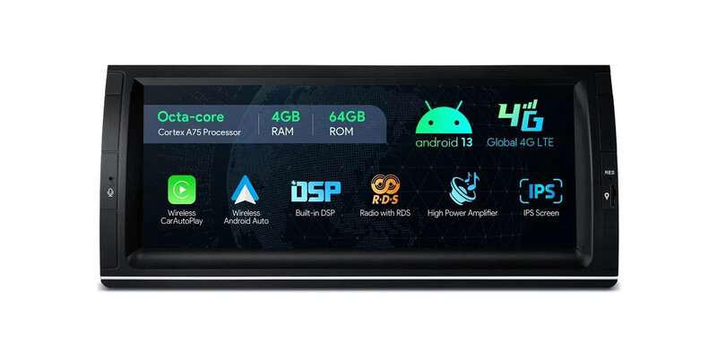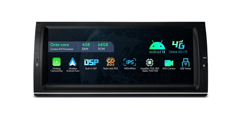 *Android 13 Octa Core Processor with 4GB RAM (DDR4), 64GB ROM (SSD) *Global 4G LTE, Support 99% of Carriers Worldwide *Built-in Wireless CarPlay and Wireless & Wired Android Auto *Screen Mirroring *New UIs *Superior Coaxial Audio Output *Premium Dual Layer G+G Touch Screen-10.25-inch 1280*480 HD IPS Screen *2K Video Playback *Built-in DSP *Automotive Grade Hardware-TDA7851 Amplifier Chip 4*48W -TDA7708 Radio with RDS Technology *Instant Reversing Mode, Support AHD Camera *Dual Band WiFi (2.4GHz & 5GHz) *Share Mobile Network by USB Tethering *PIP Mode Enabled *Multitask with Split Screen *Built-in Three USB Ports *Latest Bluetooth 5.0 *Optimized CANbus Decoding *Steering Wheel Controls *Customized Aluminum Heat Sink *Accurate GPS Navigation *Optional Features (Extra Accessories Needed) - Camera, OBD, DVR, DAB, TPMS, Keyboard and Microphone