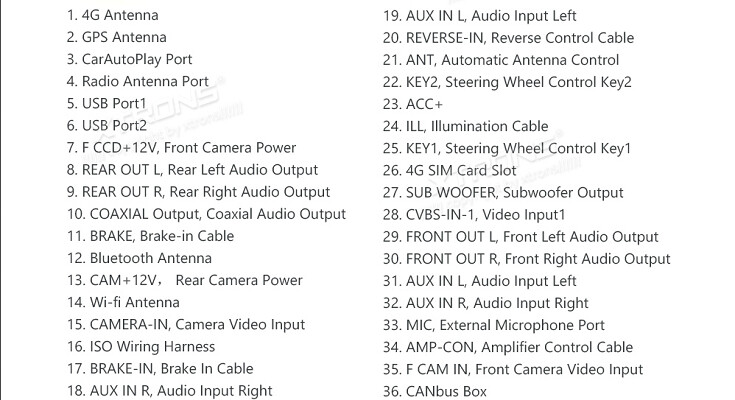 Pokud je napájecí port vašeho vozidla stejný jako na obrázku (52pinový port), objednejte si prosím tento ISO kabel (AK/VW/ISOMOB) jako pomůcku při instalaci.