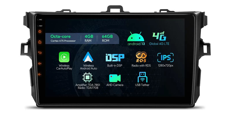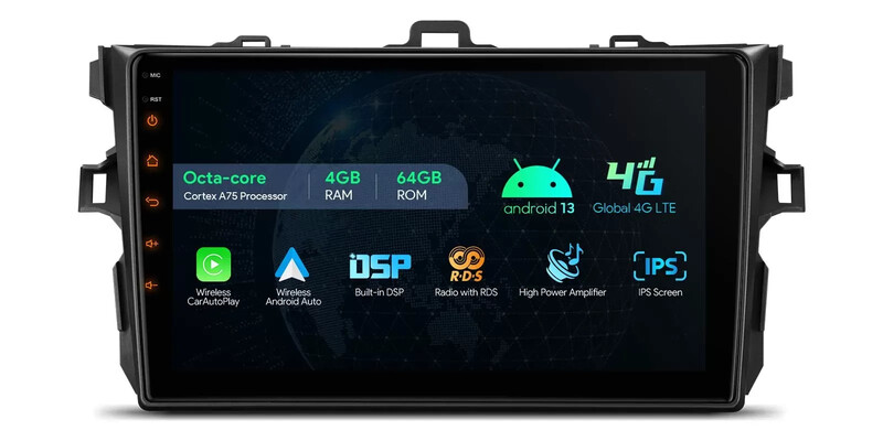 Krátký popis Autorádio pro vozy Toyota Corolla (2007-2013) - 9" HD dotykový displej IPS, Android 13, osmijádrový