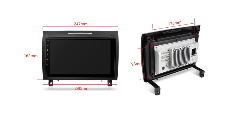 * Čelní panel: 247/240x162 mm. Přestože jsme vynaložili veškeré úsilí, abychom zajistili kompatibilitu této jednotky s uvedenými vozidly, zkontrolujte prosím před nákupem rok výroby, rozměry a tvar středové konzoly vašeho vozidla.