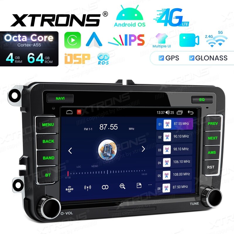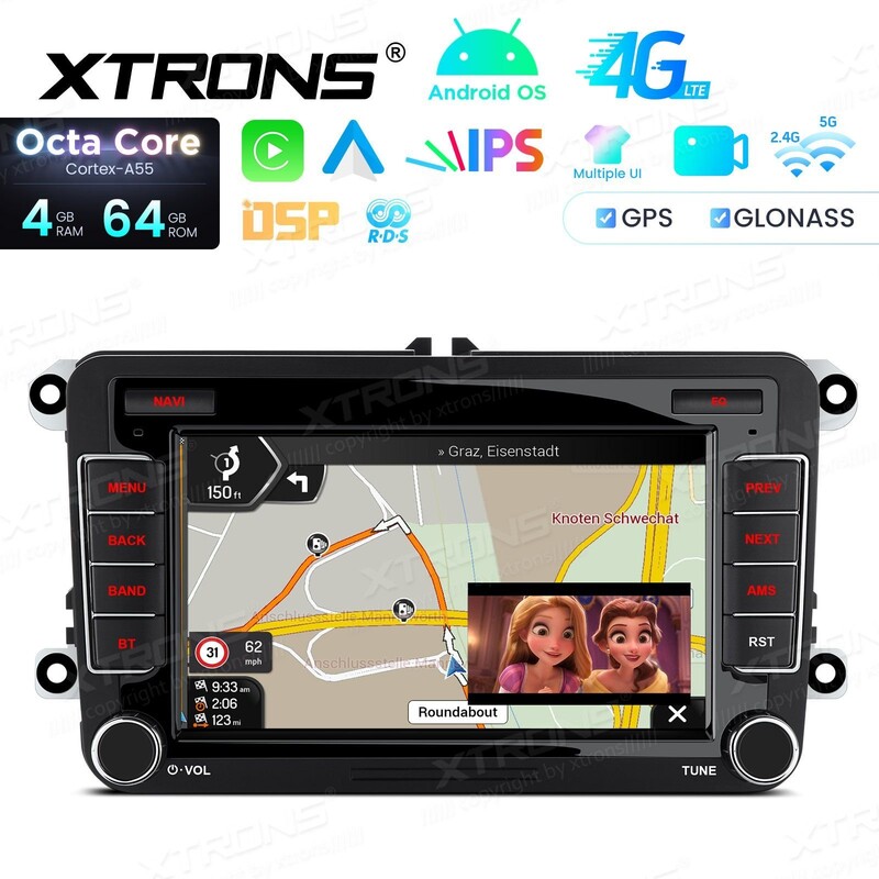 7 palcový Android Octa Core Navigace Stereo 4+64GB vestavěný 4G LTE DSP RDS IPS displej pro Volkswagen/Skoda/Seat
