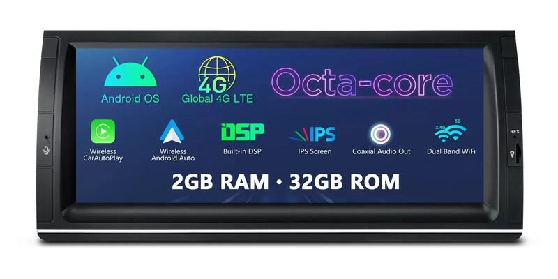 Android Octa Core 2GB DDR4 RAM + 32GB ROM 10,25'' 1280x480 HD IPS obrazovka Multimediální přehrávač do auta Stereo GPS navigační systém s duálním uživatelským rozhraním Hardware pro automobilový průmysl Globální síť 4G LTE Zrcadlení obrazovky Vestavěný CarAutoPlay & Android Auto & DSP rádio s RDS Koaxiální audio výstup pro BMW E39/E38