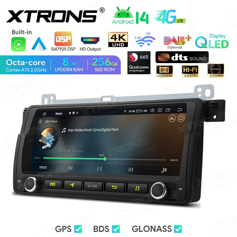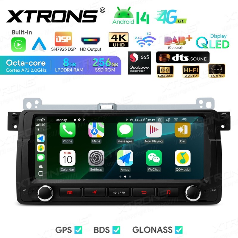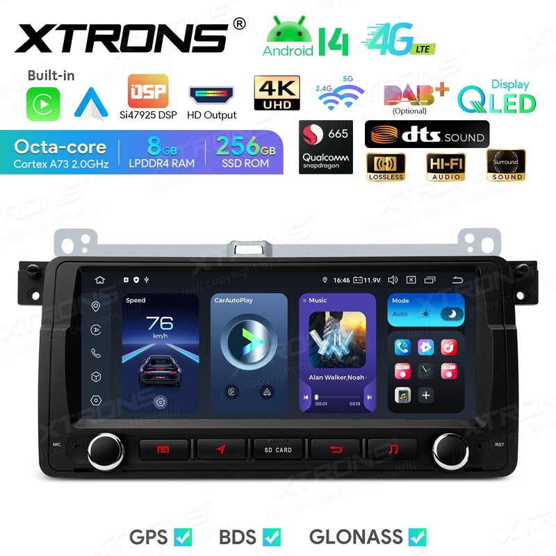 * Android 14 Octa Core Procesor s 8GB RAM (LPDDR4), 256GB ROM (SSD) *Qualcomm Snapdragon 665 Platforma 11nm proces až 2,0 GHZ A73*+A53*4 *Adreno 610 GPU/ Podpora 4K Video *Zpracování digitálního zesilovače a digitální zvuk DTS -STMicroelectronics TDA7808 Zesilovač s výkonem Max 4x45W -Silikonické laboratoře SI47925 DSP *Výstavný HDMI&Pe-fiber&RCA Výstup * 8,8 palc 1280 * 480 Rozlidání QLED IPS G+G dotyková obrazovka *Síťujte 4G LTE síť, podpůrte dopravcům v Asii a Evropě * Chytré uživatelské rozhraní s denním a nočním režimem *Bilt-in Wireless CarPlay a kabelové a bezdrátové Android Auto *Podpora Micro-SIM karty *Dual Band WiFi modul (2.4GHz & 5GHz) *Screen zrcadlení *100% hliníkové tepelné dřezy a vestavěný ventilátor pro efektivní rozptyl tepla *Podpora 1920 *1080P AHD Fotoaparáty * Optimalizovaný Canbus Dekódování *Pravná GPS navigace *Nejnovější Bluetooth 5.0 *Multimedia USB/SD Vstup *Psavý Modely a roky -Pro BMW E46 4-dveřový Sedan(1998-2005), E46 2-dveřové Coupe(1999-2006), E46 2-dveře Kabinet(1999-2006), E46 M3(2000-2006) -Pro Rover 75 (1999-2005) -Z MG ZT (2001-2005) *Volitelné funkce (Potřebné Příslušenství Extra Příslušenství) -Kamera, OBD, DAB+, DVR, TPMS, Mikrofon a klávesnice