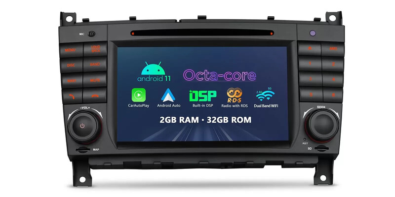 Android 12 Octa Core 2GB DDR4 RAM + 32GB ROM 7'' multimediální přehrávač DVD do auta GPS navigační systém s duálním uživatelským rozhraním Hardware automobilové kvality Vestavěný CarAutoPlay & Android Auto & DSP rádio s RDS koaxiálním audio výstupem Přizpůsobení pro Mercedes-Benz třídy C, CLK, třídy G
