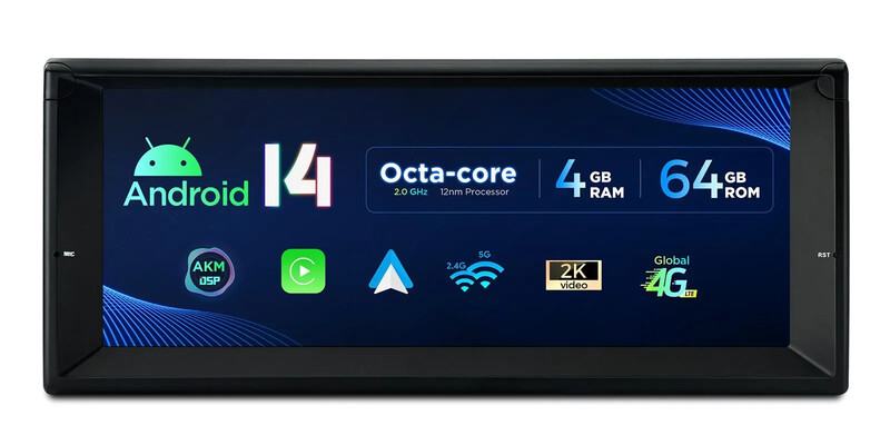 *Osmijádrový procesor s operačním systémem Android, 4 GB RAM (DDR4), 64 GB ROM (SSD) *Dvojité přepínání uživatelského rozhraní *Globální síť 4G LTE, podpora 99 % operátorů po celém světě *Vynikající koaxiální zvukový výstup *10.25palcový dotykový displej HD IPS G+G s rozlišením 1280*480 *Podpora videa 1080P *Vestavěný bezdrátový CarPlay a bezdrátový a kabelový Android Auto *Zrcadlení obrazovky *Vestavěný DSP *Zesilovač STMicroelectronics TDA7388 *Rádio STMicroelectronics TDA7708 *Nejnovější Bluetooth 5.0 * Dvoupásmový modul WiFi (2,4 GHz a 5 GHz) * Prvotřídní hliníkový chladič * Přesná navigace GPS * Okamžitý přístup ke kameře, podpora AHD kamery * Optimalizované dekódování CANbus * Ovládání na volantu * Vestavěný slot SD a 2 porty USB * Multitasking s rozdělenou obrazovkou * Povolený režim PIP * 4*45w Surround Stereo * Volitelné funkce (je třeba další příslušenství) - Kamera, OBD, DAB+, DVR, TPMS, Mikrofon a klávesnice