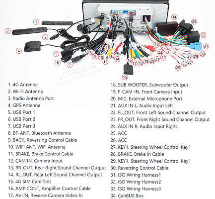3. Pokud má originální autorádio ve vašem voze obrazovku s úhlopříčkou 4,3" nebo 7" s 12kolíkovým konektorem, nebo pokud máte navigační jednotku umístěnou v zadní části vozu, budete potřebovat další 6m prodlužovací kabel, který vám pomůže s instalací. (Kompatibilní jsou kabely XTRONS EXL005 a EXL007.)