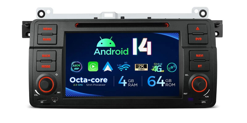 Krátký popis Autorádio pro vozy BMW E46/Rover/MG - 7" HD dotykový displej IPS, Android 14, osmijádrový procesor,