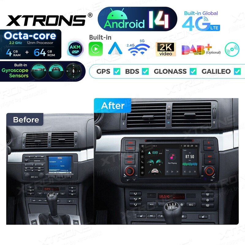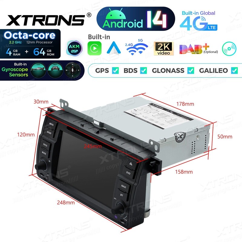 *Android 14 s 4GB DDR4 RAM+64GB EMMC ROM *12 nm Octa Core 2.2GHZ procesor *Postavěný globální 4G LTE *Postavitelný AKM DSP *2 Sady stylového uživatelského rozhraní s inkluzometrovým displejem *7 palcový 1280*720 Prémiový HD IPS G+G dotykový displej *2K Video Přehrávání přehrávání *Vestavěný bezdrátový CarPlay a plně vybavený bezdrátový a kabel Android Auto *Rychle a přesné GPS navigace *Podpora AHD kamery * Optimalizovaný Canbus Dekódování *Dynamická cirkulace s univerzálními vícebarevnými LED světly *Screen zrcadlení *Nejnovější Bluetooth 5.0 *Dual Band WiFi modul (2.4GHz & 5GHz) *Sdílení Mobilní Sítě Přes USB Tethering *PIP-Obrázek v obraze *Automobil-grade hardware -STMicroelectronics 4x45W TDA7388 Zesilovačový čip - Bezregionů DVD Přehrávání přehrávání -Puzený 3 USB vstup -STMicroelectronics SI4755 Radio s RDS -Povznášenka SIM Port & SD Port *Externí Mikrofon Včetně *Efektivní chladicí systém *Prozkoumejte více funkcí s příslušenstvím XTRONS (volitelné) -Kamera, OBD, DVR, DAB, TPMS, Klávesnice a HD/RCA Výstup