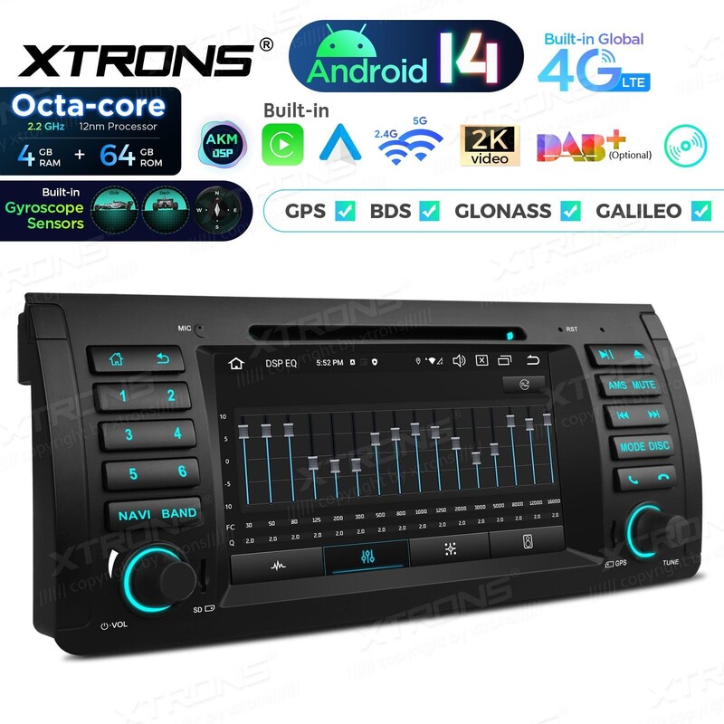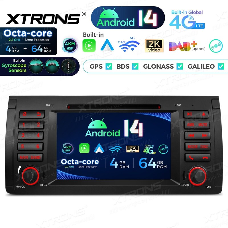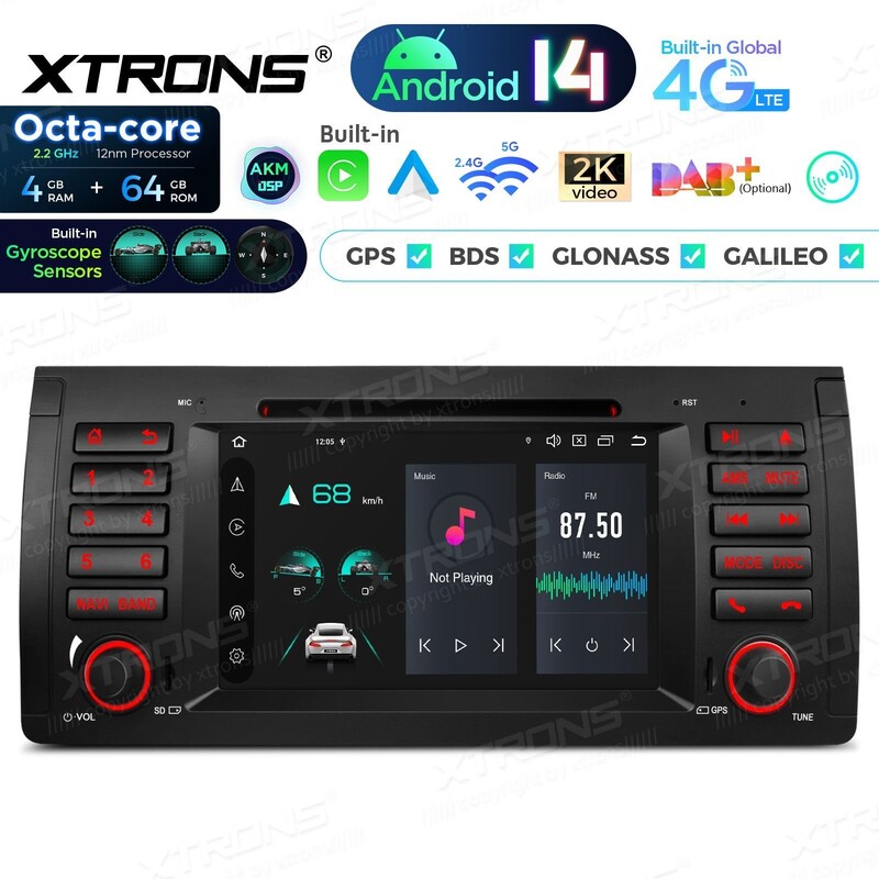 7 palců Octa Core 4+64GB Global 4G Android 14 IPS Car DVD Multimediální přehrávač vestavěný AKM DSP Gyroskopové snímače pro BMW X5 E53