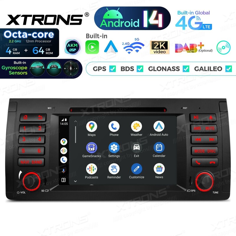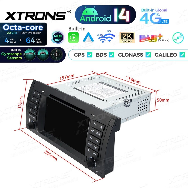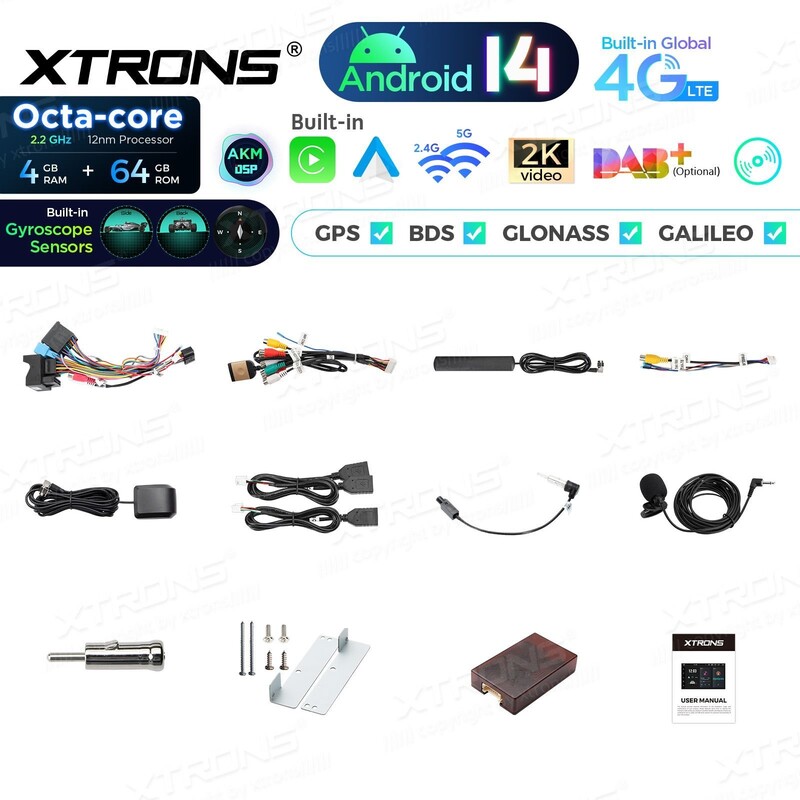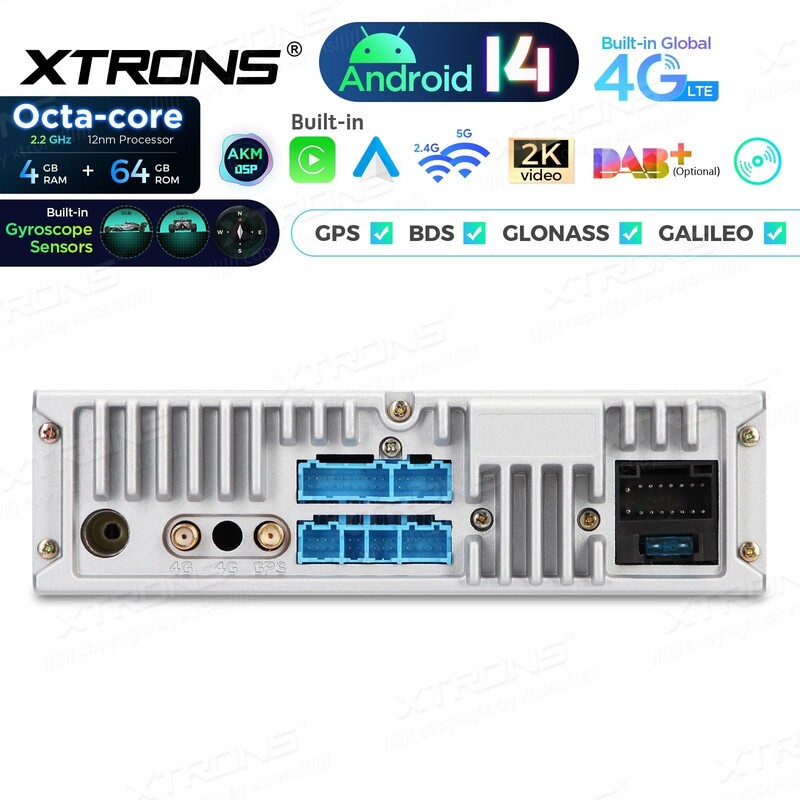 *Android 14 s 4GB DDR4 RAM+64GB EMMC ROM *12nm Octa Core 2.2GHz Procesor *Globálně Kompatibilní 4G LTE Modem Podporuje 99% Dopravců Po Celém Světě *Stok vigorsoskopy *2 Sady stylového uživatelského rozhraní s inkluzometrovým displejem *Postavitelný AKM DSP *7 palcový 1280x720 HD IPS G+G dotykový displej *2K Video Přehrávání přehrávání *Povtězené bezdrátové přehrávání automobilů a bezdrátový a USB kabel Android Auto *Rychle a přesné GPS navigace *Instanc Reversing Mode Kompatibilní s AHD kamerou *Optimizovaná podpora Canbus dekódování původní funkce vozidla a informace *Dynamická cirkulace s univerzálními vícebarevnými LED světly *Screen zrcadlení *Nejnovější Bluetooth 5.0 *Dual Band WiFi modul (2.4GHz & 5GHz) *Sdílení Mobilní Sítě Přes USB Tethering *PIP-Obrázek v obraze *Automobil-grade hardware -STMicroelectronics 4x45W TDA7388 Zesilovačový čip - Bezregionů DVD Přehrávání přehrávání -Puzený 3 USB vstup -STMicroelectronics SI4755 Radio s RDS *Externí Mikrofon Včetně *Stavebový SIM port a SD Port *Efektivní chladicí systém *Prozkoumejte více funkcí s příslušenstvím XTRONS (volitelné) -DVR, Fotoaparát, OBD, TPMS , DAB, Kejkový a HD/RCA Výstup