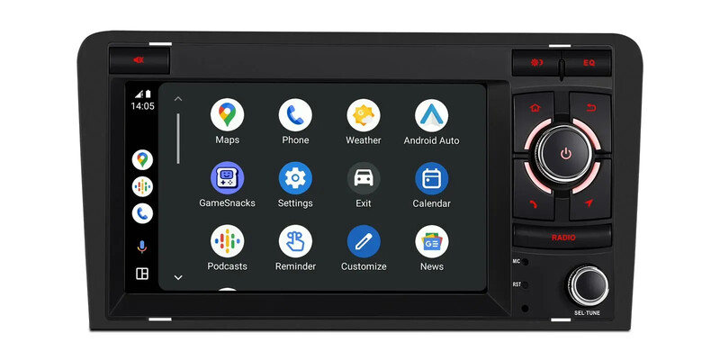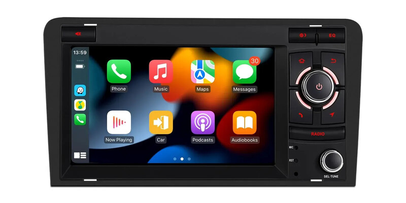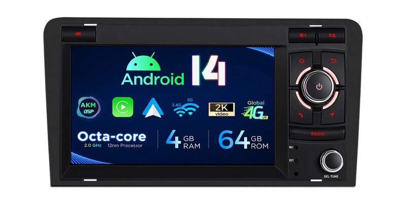 7palcový navigační systém Android 14 Car Stereo s vestavěným CarPlay a Android Auto a DSP Custom Fit pro Audi