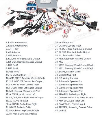 Zkontrolujte prosím čelní panel továrního rádia vašeho vozu. Pokud je stejný jako na dodaném obrázku, podívejte se na XTRONS PX74MTVL. Zkontrolujte prosím, zda je napájecí port vašeho vozidla stejný jako na dodaném obrázku. Pokud ano, je třeba připojit 36 k 39 (šedý kabel k šedému kabelu)a t (bílý kabel k bílému kabelu), nejprve zkontrolujte schéma zapojení. Chcete-li zachovat funkčnost kabelu/portu USB z výroby, odpojte 10 a připojte 41 k portu A (nejprve zkontrolujte schéma zapojení).
