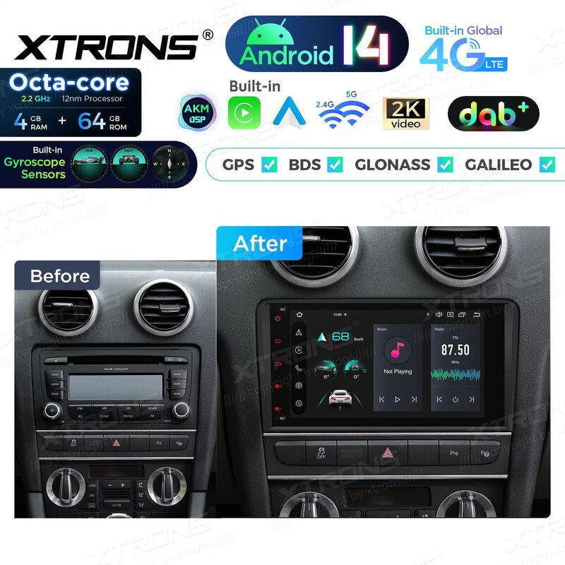 *Stav Automotive-grade DAB+ *Poslední Android 14 s 4GB RAM (DDR4) & 64GB ROM (EMMC) *12nm Octa Core 2.2GHz Procesor *Global 4G LTE, podpora 99 % nosičů po celém světě *Stok vigorsoskopy *2 Sady stylového uživatelského rozhraní s inkluzometrovým displejem *Postavitelný AKM DSP *8 palcový 1280*720 Premium HD IPS G+G dotykový displej *2K Video Přehrávání přehrávání *Vestavěný bezdrátový CarPlay a plně vybavený bezdrátový a kabel Android Auto *Rychle a přesné GPS navigace *Instanc Reversing Mode Kompatibilní s AHD kamerou * Optimalizovaný Canbus Dekódování -Řešení kolového ovládání *Dynamická cirkulace s univerzálními vícebarevnými LED světly *Screen zrcadlení *Nejnovější Bluetooth 5.0 *Dual Band WiFi modul (2.4GHz & 5GHz) *Sdílení Mobilní Sítě Přes USB Tethering *PIP-Obrázek v obraze *Automobil-grade hardware -STMicroelectronics TDA7388 Zisk zesilovače -Puzený 3 USB vstup -STMicroelectronics SI7455 Radio s RDS *Externí Mikrofon Včetně *Efektivní chladicí systém *Prozkoumejte více funkcí s příslušenstvím XTRONS (volitelné) -Kamera, OBD, DVR, TMPM, Klávesnice a HD/RCA Výstup
