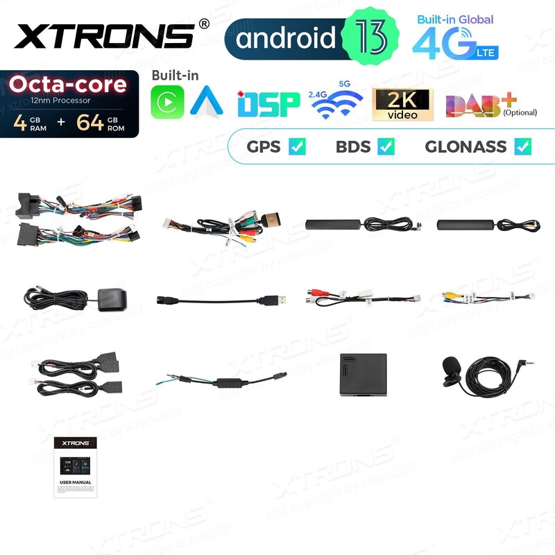*Android 14 Octa Core Processor s 4GB RAM (DDR4), 64GB ROM (SSD) *Nová síla globálního 4G LTE autorádia, podpora 99% operátorů po celém světě *4 sady přepínatelných motivů uživatelského rozhraní *Vícebarevné světelné efekty *Vestavěný bezdrátový CarPlay a bezdrátový a kabelový Android Auto *Automotive Grade Hardware -STMicroelectronics TDA7388 High Power Amplifier -SI4755 Radio with RDS, Bluetooth 5.0, -Dual Band WiFi Module (2.4GHz a 5GHz) -100% hliníkový chladič *Přesná GPS navigace *Instantní režim couvání kompatibilní s AHD kamerou *Optimalizované dekódování CANbus *Ovládání volantu *Vestavěný DSP *Zrcadlení obrazovky *Snadné sdílení mobilní sítě pomocí USB Tethering *Přehrávání 2K videa *PIP-Obraz v obraze *Premiový dvouvrstvý dotykový displej G+G -9palcový 1280*720 pixelů *Vestavěné 3 kabely USB *Včetně externího mikrofonu *Vestavěný port SD *Rozšíření dalších funkcí pomocí volitelného příslušenství - kamera, OBD, DVR, DAB, TPMS, HD/RCA výstup a klávesnice