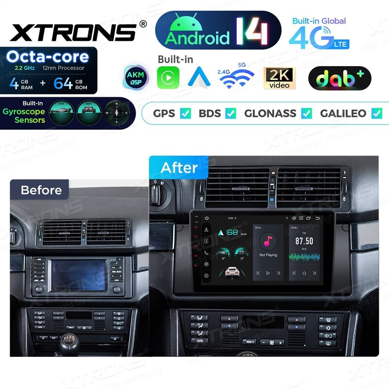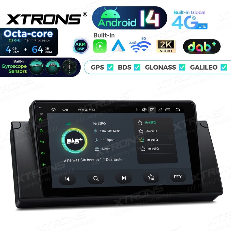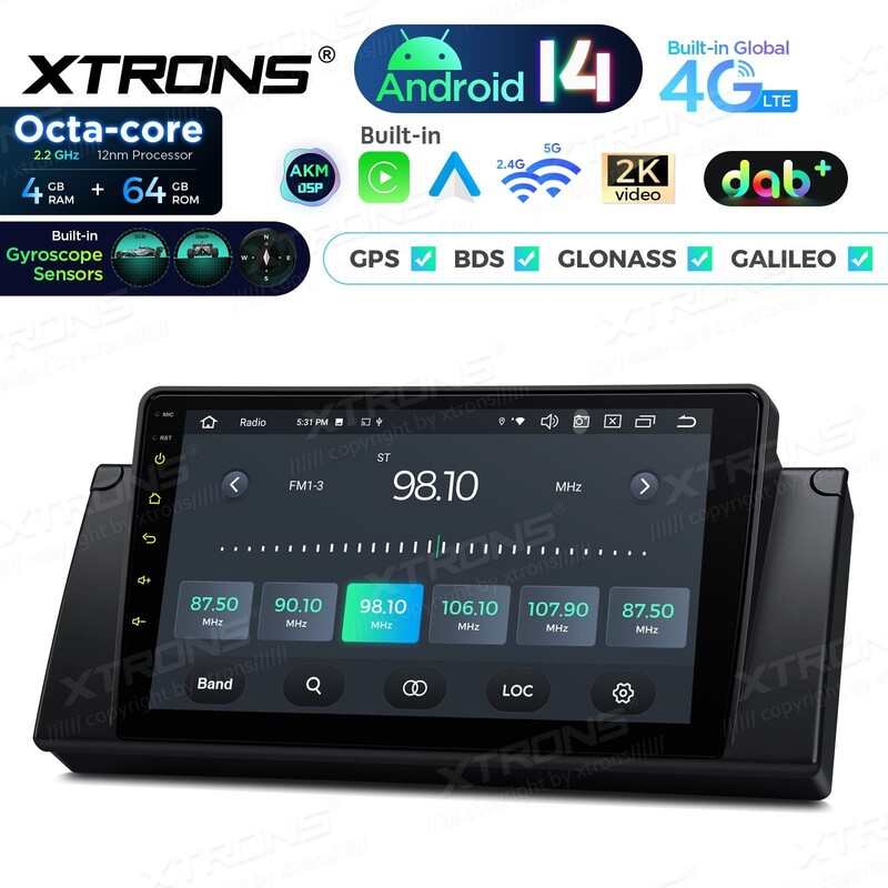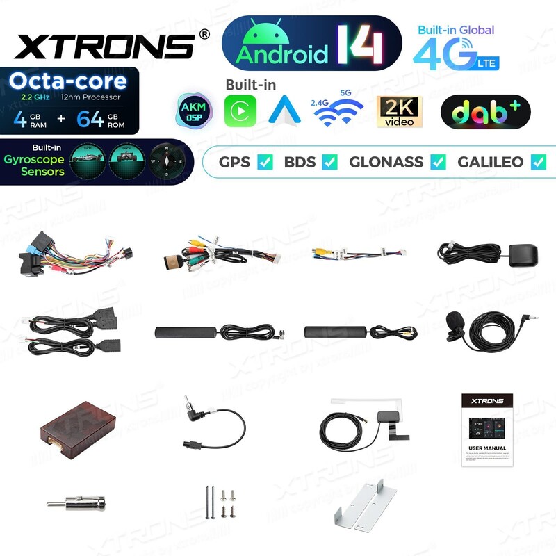 *Android 14 s 4GB RAM DDR4+64GB ROM EMMC *12nm Procesor Octa Core do 2,2GHz * 9 palcový 1280*720 Premium HD IPS G+G dotykový displej *Výstavba DAB+ *Postavěný globální 4G LTE *Stok vigorsoskopy *Postavitelný AKM DSP *2K Video Přehrávání přehrávání *2 Sady stylového uživatelského rozhraní s inkluzometrovým displejem *Vestavěný bezdrátový CarPlay a plně vybavený bezdrátový a kabel Android Auto *Rychle a přesné GPS navigace *Instanc Reversing Mode Kompatibilní s AHD kamerou * Optimalizovaný Canbus Dekódování -Řešení kolového ovládání *Dynamická cirkulace s univerzálními vícebarevnými LED světly *Screen zrcadlení *Nejnovější Bluetooth 5.0 *Dual Band WiFi modul (2.4GHz & 5GHz) *Sdílení Mobilní Sítě Přes USB Tethering *PIP-Obrázek v obraze *Automobil-grade hardware -STMicroelectronics TDA7388 Zisk zesilovače -Puzený 3 USB vstup -STMicroelectronics SI7455 Radio s RDS *Externí Mikrofon Včetně *Efektivní chladicí systém *Prozkoumejte více funkcí s příslušenstvím XTRONS (volitelné) -Kamera, OBD, DVR, TMPM, Klávesnice a HD/RCA Výstup