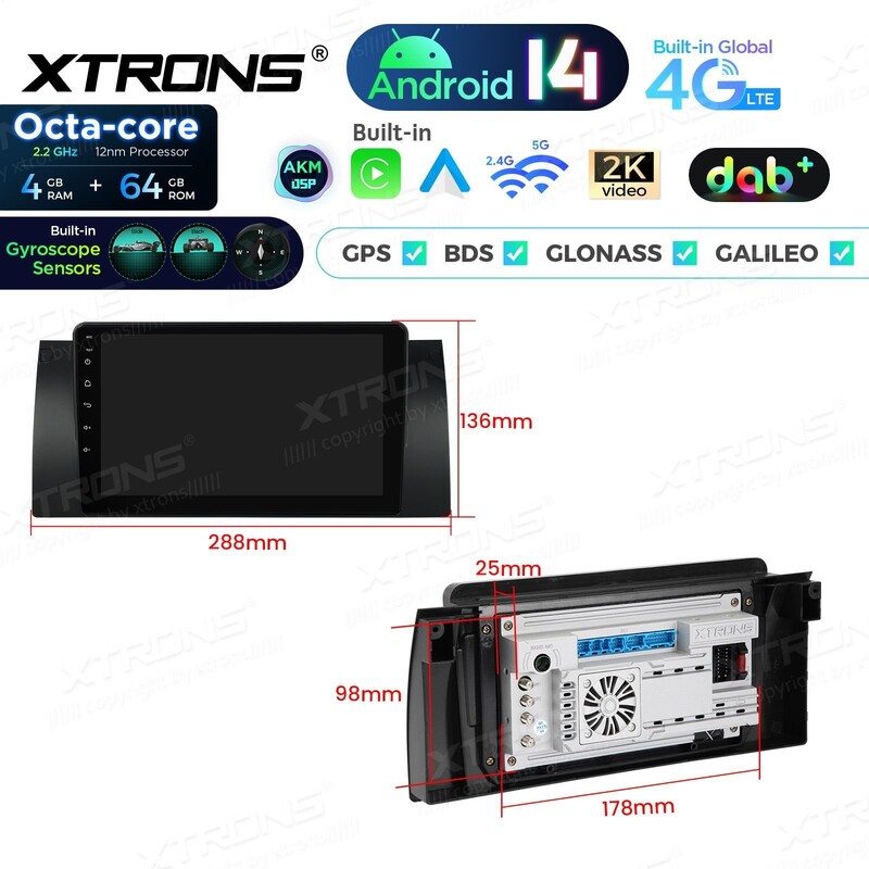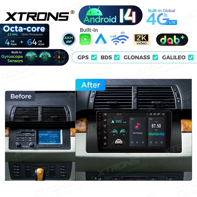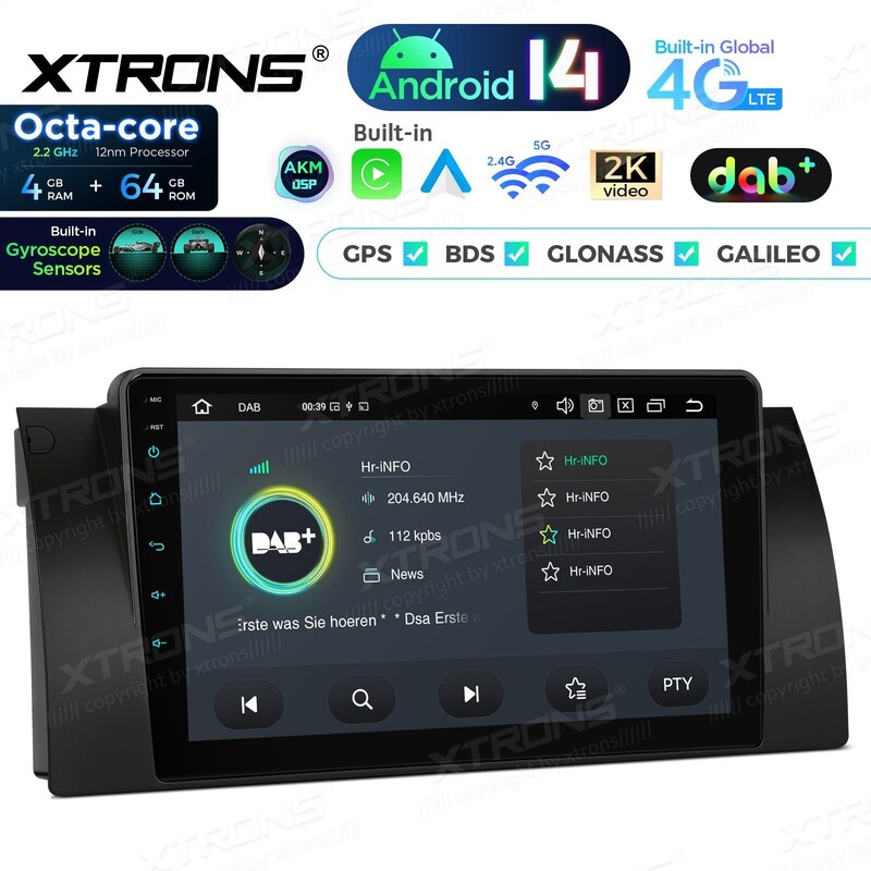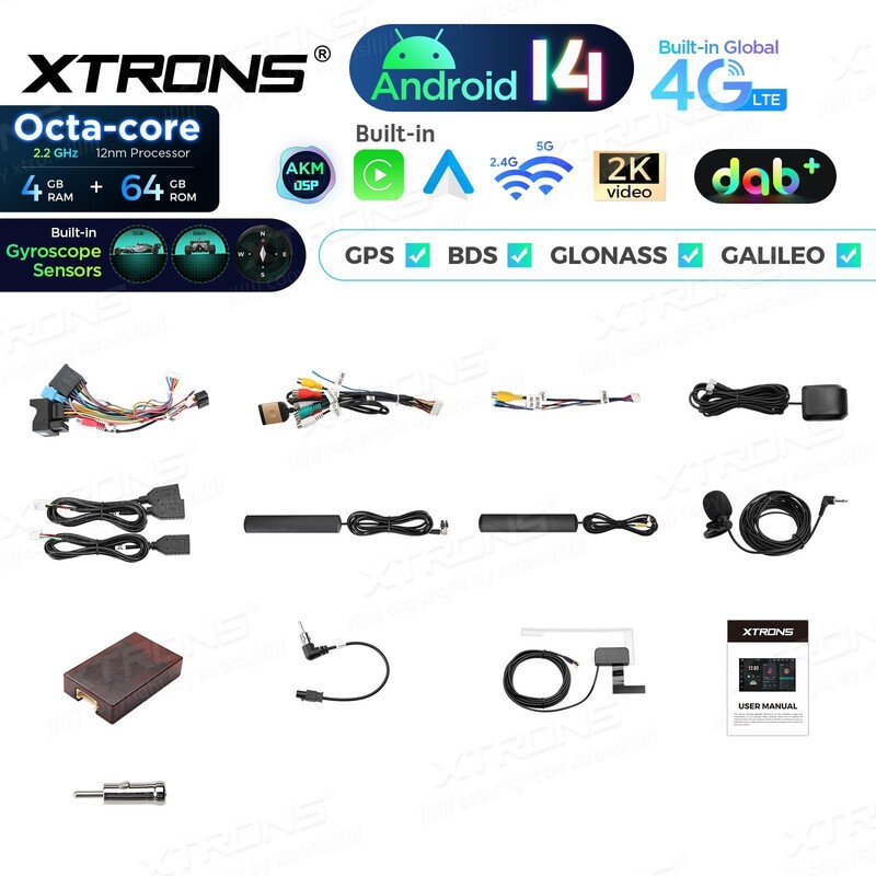 *Android 14 s 4GB RAM DDR4+64GB ROM EMMC *12nm Procesor Octa Core do 2,2GHz * 9 palcový 1280*720 Premium HD IPS G+G dotykový displej *Výstavba DAB+ *Postavěný globální 4G LTE *Stok vigorsoskopy *Postavitelný AKM DSP *2K Video Přehrávání přehrávání *2 Sady stylového uživatelského rozhraní s inkluzometrovým displejem *Vestavěný bezdrátový CarPlay a plně vybavený bezdrátový a kabel Android Auto *Rychle a přesné GPS navigace *Instanc Reversing Mode Kompatibilní s AHD kamerou * Optimalizovaný Canbus Dekódování -Řešení kolového ovládání *Dynamická cirkulace s univerzálními vícebarevnými LED světly *Screen zrcadlení *Nejnovější Bluetooth 5.0 *Dual Band WiFi modul (2.4GHz & 5GHz) *Sdílení Mobilní Sítě Přes USB Tethering *PIP-Obrázek v obraze *Automobil-grade hardware -STMicroelectronics TDA7388 Zisk zesilovače -Puzený 3 USB vstup -STMicroelectronics SI7455 Radio s RDS *Externí Mikrofon Včetně *Efektivní chladicí systém *Prozkoumejte více funkcí s příslušenstvím XTRONS (volitelné) -Kamera, OBD, DVR, TMPM, Klávesnice a HD/RCA Výstup
