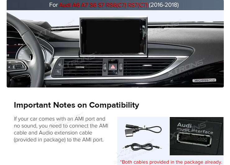 Pokud je vaše auto dodáváno s portem AMI a bez zvuku, musíte připojit kabel AMI a zvukový prodlužovací kabel (poskytovaný v balení) k portu AMI.
