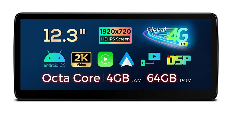 12,3" HD dotykový displej s HD rozlišením 1920 x 720 px