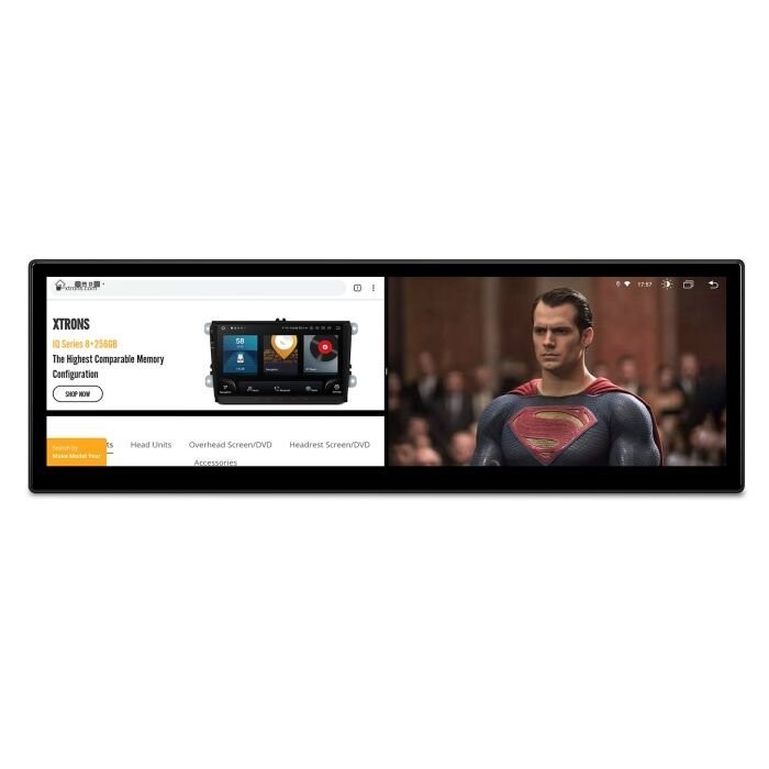*14,9" exkluzivní nová koncepce ultratenkého designu *2560*720 Super Large IPS 2.5D G+G Grade-A obrazovka * Plně laminovaná obrazovka proti odleskům * Operační systém Android Cortex A75*2+A55*6 12nm proces * Octa-Core LPDDR4 4GB + 64GB ROM SSD * Globální 4G LTE (podpora 99 % operátorů po celém světě) * Stylové motivy uživatelského rozhraní * Vestavěný-in Wireless CarPlay a Wireless & Wired Android Auto *Zrcadlení obrazovky *Podpora AHD kamery *Anglický a německý uživatelský manuál a instalační příručka *Originální informační displej vozu *Zachování originálních funkcí -iDrive systému -Zachování systému zesilovače -Originální rádio -Originální CD přehrávač -Bluetooth -Zobrazení záložní kamery -Funkce ovládání na volantu *Vestavěný DSP *Přesná GPS navigace *Bluetooth 5.0 *Dvojpásmová Wi-Fi (2,4GHz a 5GHz) *Sdílení mobilní sítě přes USB Tethering *Přehrávání videa 2K *Víceúlohový displej *PIP-Picture in Picture *Vestavěné 2 USB vstupy *Prozkoumejte další funkce s příslušenstvím XTRONS (volitelné) -DVR, kamera, OBD, TPMS a DAB