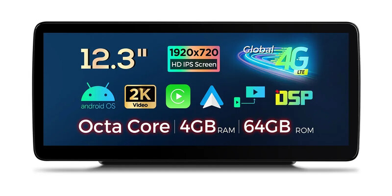 *12,3palcový exkluzivní nový koncept ultratenkého designu *1920*720 Super velká obrazovka IPS 2.5D G+G Grade-A *Plně laminovaná obrazovka proti odleskům *Android 14 Cortex A75*2+A55*6 12nm proces *Octa-Core LPDDR4 4GB+64GB ROM SSD *Globální 4G LTE (podpora 99 % operátorů po celém světě) *Stylové motivy uživatelského rozhraní *Vestavěný bezdrátový CarPlay a bezdrátový a kabelový Android Auto *Zrcadlení obrazovky *Podpora AHD kamery *Anglický a německý uživatelský manuál a instalační příručka *Originální informační displej automobilu *Zachování původních funkcí -Podpora ovládání COMAND -Podpora SWC -Podpora tovární kamery -Podpora továrního CD přehrávače -Kompatibilní s optickým zesilovačem *Vestavěný DSP *Přesná GPS navigace *Bluetooth 5.0 *Dvojpásmová Wi-Fi (2,4 GHz a 5 GHz) *Sdílení mobilní sítě prostřednictvím tetheringu USB *Přehrávání videa 2K *Víceúčelový displej *PIP - obraz v obraze *Vestavěné 2 vstupy USB *Prozkoumejte další funkce s příslušenstvím XTRONS (volitelné) -DVR, kamera, OBD, DAB, TPMS a mikrofon