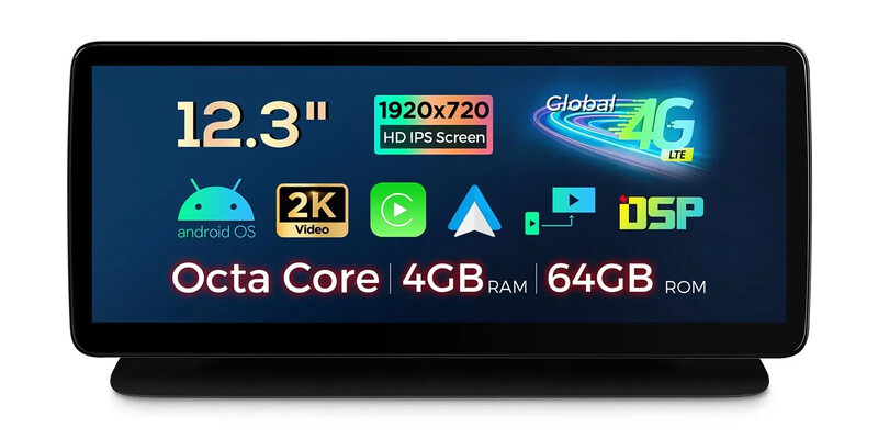 *12,3" exkluzivní nová koncepce ultratenkého designu *1920*720 Super Large IPS 2.5D G+G Grade-A Screen *Plně laminovaná obrazovka proti odleskům *Android OS Cortex A75*2+A55*6 12nm proces *Octa-Core LPDDR4 4GB+64GB ROM SSD *Globální 4G LTE (podpora 99% operátorů po celém světě) *Stylové motivy uživatelského rozhraní *Vestavěný-in Wireless CarPlay a Wireless & Wired Android Auto *Zrcadlení obrazovky *Podpora AHD kamery *Anglický a německý uživatelský manuál a instalační příručka *Originální informační displej vozu *Zachování původních funkcí -Podpora ovládání COMAND -Podpora SWC -Podpora tovární kamery -Podpora továrního CD přehrávače -Kompatibilita s optickým zesilovačem *Vestavěný DSP *Přesná GPS navigace *Bluetooth 5.0 *Dvojpásmová Wi-Fi (2,4GHz a 5GHz) *Sdílení mobilní sítě přes USB Tethering *Přehrávání videa 2K *Víceúlohový displej *PIP-Picture in Picture *Vestavěný vstup 2 USB *Prozkoumejte další funkce s příslušenstvím XTRONS (volitelné) -DVR, kamera, OBD, DAB, TPMS a mikrofon