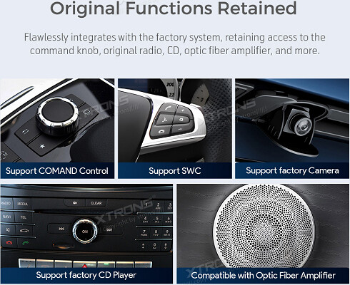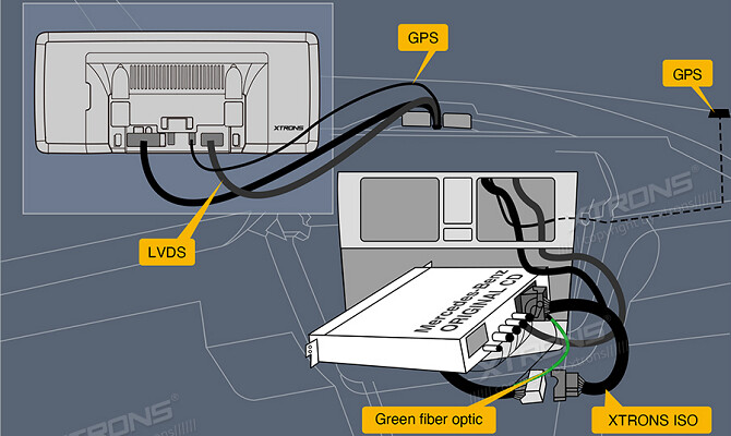 Upozorňujeme, že pokud je vaše vozidlo vybaveno systémem COMAND APS NTG 2 nebo COMAND APS NTG 2.5, musíte si u společnosti XTRONS objednat extra box optického dekodéru, abyste zachovali původní systém COMAND vašeho vozu. (XTRONS FOBB02 je kompatibilní)