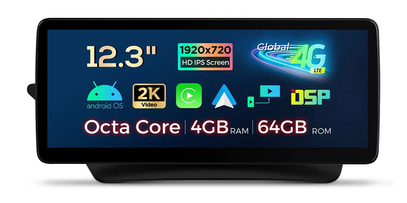 *12,3" exkluzivní nová koncepce ultratenkého designu *1920*720 Super Large IPS 2.5D G+G Grade-A Screen *Plně laminovaná obrazovka proti odleskům *Android OS Cortex A75*2+A55*6 12nm proces *Octa-Core LPDDR4 4GB+64GB ROM SSD *Globální 4G LTE (podpora 99% operátorů po celém světě) *Stylové motivy uživatelského rozhraní *Vestavěný-in Wireless CarPlay a Wireless & Wired Android Auto *Zrcadlení obrazovky *Podpora AHD kamery *Anglický a německý uživatelský manuál a instalační příručka *Originální informační displej vozu *Zachování původních funkcí -Podpora ovládání COMAND -Podpora SWC -Podpora tovární kamery -Podpora továrního CD přehrávače -Kompatibilita s optickým zesilovačem *Vestavěný DSP *Přesná GPS navigace *Bluetooth 5.0 *Dvojpásmová Wi-Fi (2,4GHz a 5GHz) *Sdílení mobilní sítě přes USB Tethering *Přehrávání videa 2K *Víceúlohový displej *PIP-Picture in Picture *Vestavěné 2 USB vstupy *Prozkoumejte další funkce s příslušenstvím XTRONS (volitelné) -DVR, kamera, OBD, DAB, TPMS a mikrofon