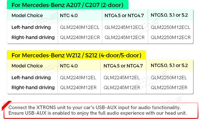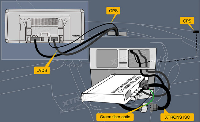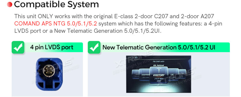 Upozorňujeme, že pokud je vaše vozidlo vybaveno systémem COMAND APS NTG 2 nebo COMAND APS NTG 2.5, musíte si u společnosti XTRONS objednat extra box optického dekodéru, abyste zachovali původní systém COMAND vašeho vozu. (XTRONS FOBB02 je kompatibilní)