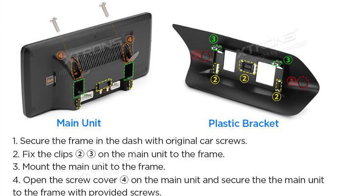 • 4. Upevněte autorádio: Jakmile jsou všechny kabely připojeny, vložte autorádio zpět do montážního prostoru a zajistěte ho pomocí šroubů.